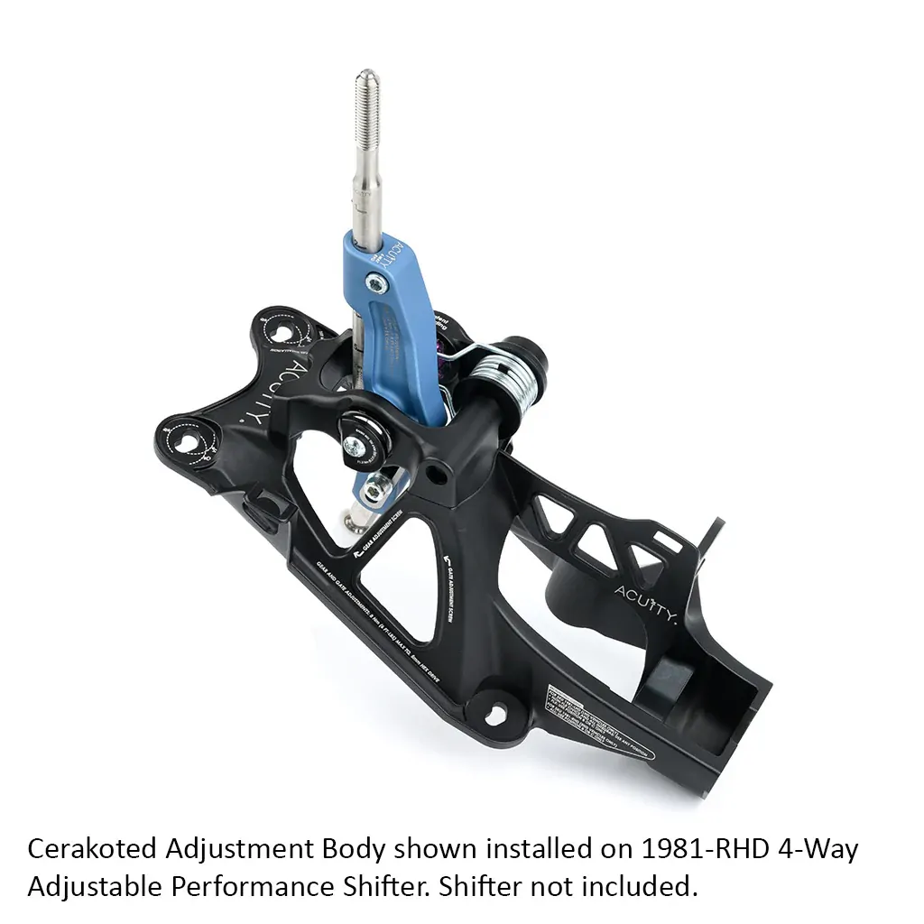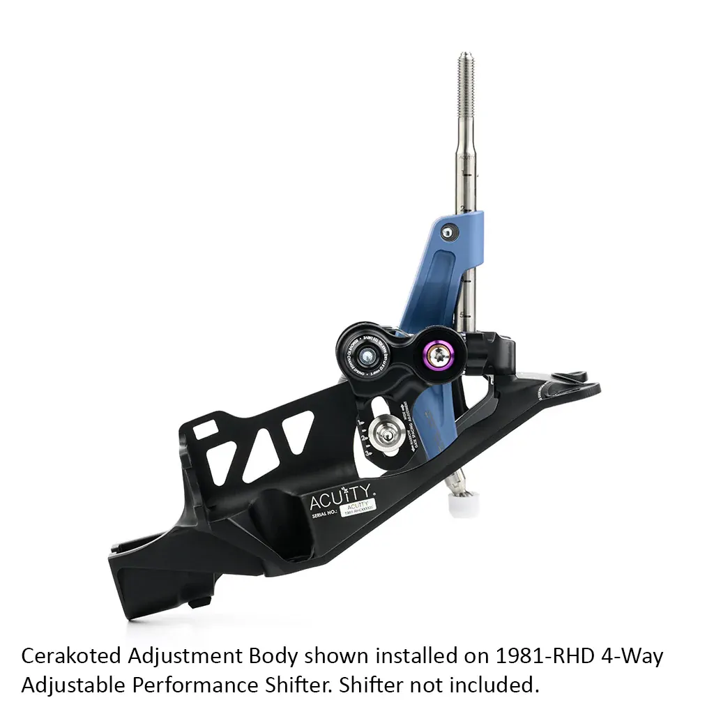 Available in 9 bold new colors, Acuity's Cerakoted Adjustment Bodies are a unique new way to customize your Acuity 1981-RHD shifter. These adjustment bodies are CNC-machined from 6061-T6 aluminum and receive a beautiful, durable, and UV-resistant Cerakote finish.