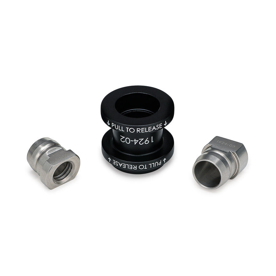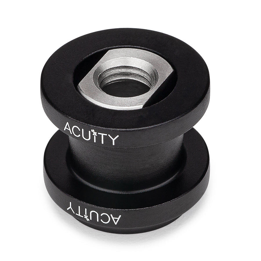 The finishing touch that looks good with any shift knob Gone are the days of sagging shift boots, broken plastic shift boot collars, and shift boot collars that don't match the diameter or style of your shift knob. ACUITY designed this Shift Boot Collar Upgrade to allow use of virtually any M10x1.5 shift knob in your Honda without sacrificing fit and finish between the shift boot and shift knob. This kit includes 2 binding nuts, one meant for flat-bottomed knobs, and the other meant for boss-bottomed knobs (like modern Civic Type R and Honda Factory Performance designs). The boot collar is reversible and can be flipped to match your knob's base diameter, whether it be a traditional narrow-bottomed knob (with a 22mm lower diameter) or the newer style wide-bottomed knobs (with a 28mm lower diameter). An integral retaining feature lets you easily pop the boot collar on and off many times without problems, so you no longer have to worry about breaking the OEM plastic boot ring when removing your shift knob. The supplied binding nuts are turned and milled from stainless steel and have flats for a 12mm open-ended wrench. The boot collar is made from 6061 billet aluminum and receives a tasteful anodized/sandblasted finish before laser etching.