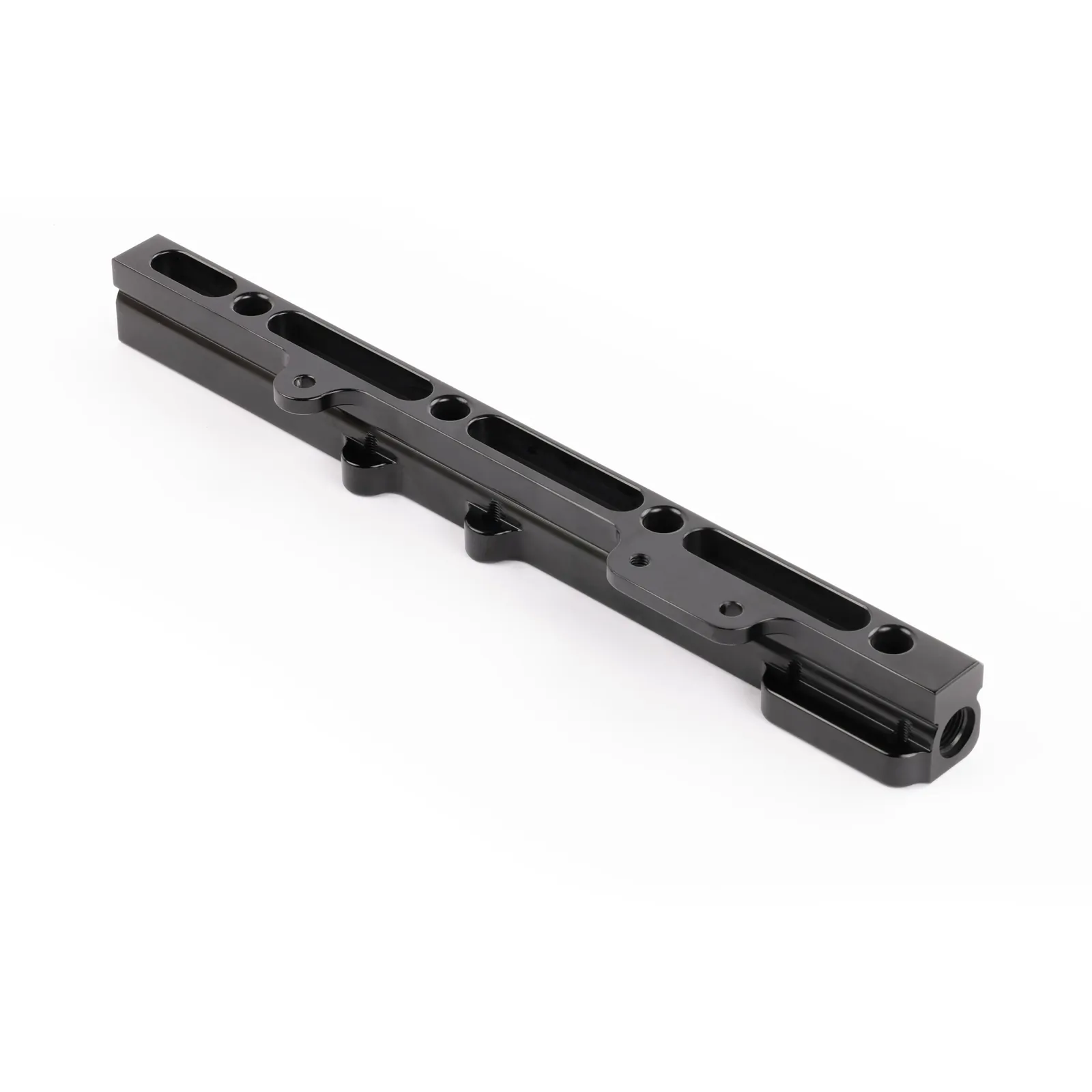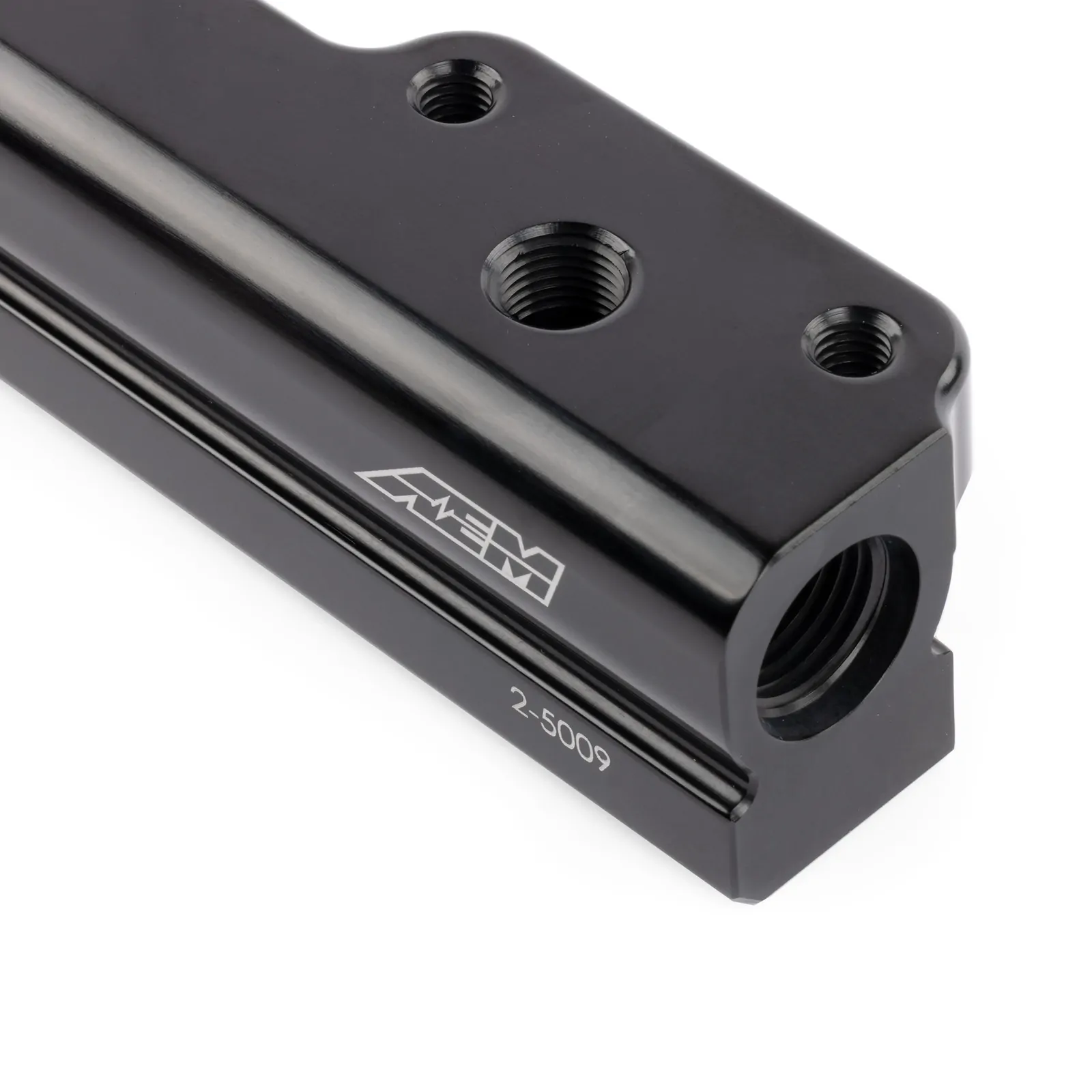 AEM High Volume fuel rails feature a 1/2-inch fuel bore to support fuel flow for applications up to 1,000 horsepower. This large bore also dampens backpressure pulses created by larger injectors and works perfectly with stock injector sizes. An additional 1/8th NPT port is included to accommodate a nitrous set up or fuel pressure gauge. A custom fuel line fitting is included for the factory fuel line, and in most cases the ends of each rail are pre tapped to accept -6 AN or 9/16"x18 fittings for users who want to use custom fuel lines.