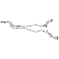 First, a 3D scan is take of the underside of the car to ensure fitment is 100% correct. Next, grade 304 Stainless Steel (with the exception of their titanium systems of course) is selected for all piping, mufflers and flanges. This particular grade is chosen for its strength, durability (ability to withstand the elements),and its ability to be formed and welded with relative consistency and ease. Cast flanges are then used which ensures 100% correct fitment every time, no leaks or additional stress points, and long lasting strength.