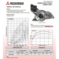 With all-new turbine and compressor wheels, this turbo upgrade qualifies as a stage 2 turbo. This stage 2 turbo designation features a +7mm larger (65mm) 5+5 billet TD05-21HR3 compressor wheel and +5mm larger (52mm) TD04-HLL1 inconel turbine. You can expect an increase in power of around +33% (to ~400hp), with a potential for up to +60% increase in power (500+hp) with race fuel or ethanol. Power gains are only good if created reliably - thankfully MHI is a trusted manufacturer that makes all of Honda’s OEM turbochargers. The housings are completely identical to the stock turbo, retaining all of the same mounting points and footprint.