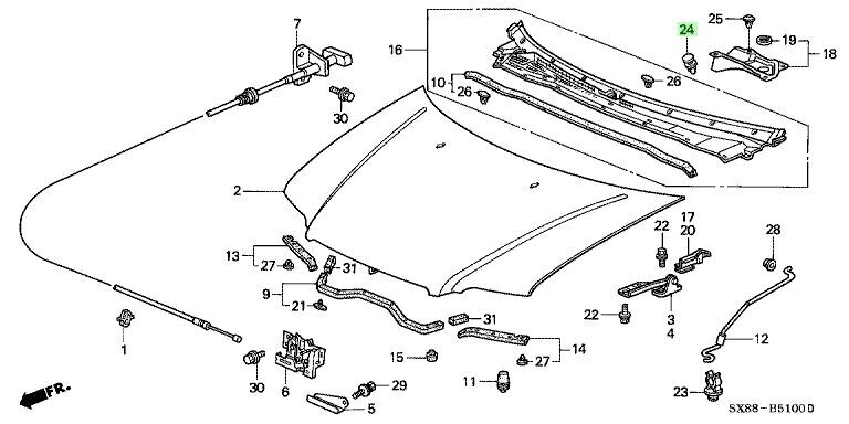 OEM HONDA FRONT WINDSHIELD COWL COVER CLIP (B) HONDA CIVIC EG EK, INTEGRA DC2