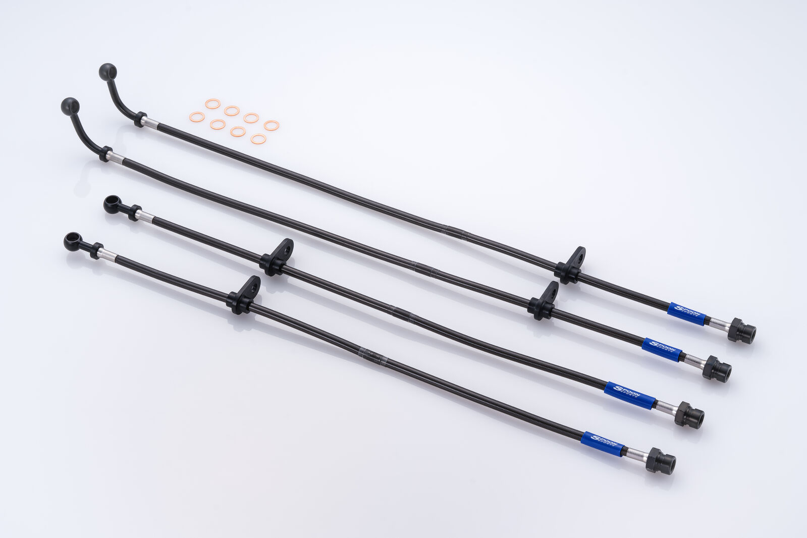 The combination of low expansion Teflon tube No. 3 and stainless steel mesh covering it creates a direct brake touch and feeling. The fittings are made of strong steel.