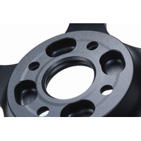 Special arched donut shaped gouge to ensure mounting rigidity and avoid stress concentration by crimping the surface pressure on the outer part. Hub bolts and hollow hub representing iconic SW388 design.